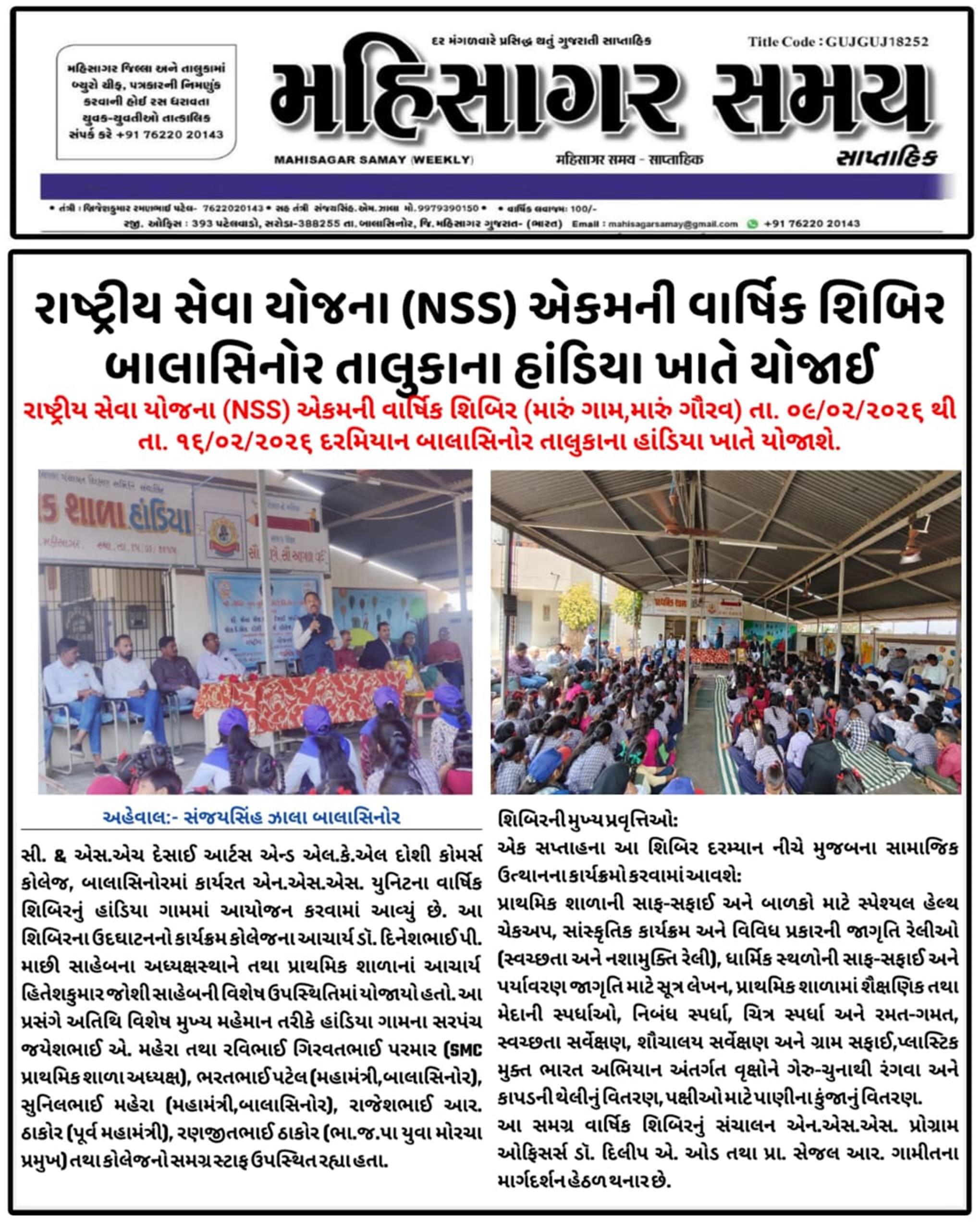 NSS CAMP 2026 AT HANIDYA VILLAGE BY COLLEGE